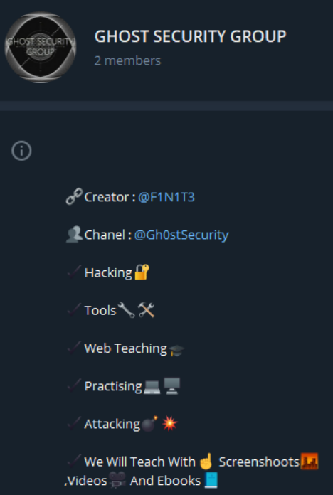 Be wary of any accounts or bots on Telegram claiming to belong to Ghost Security Group™.